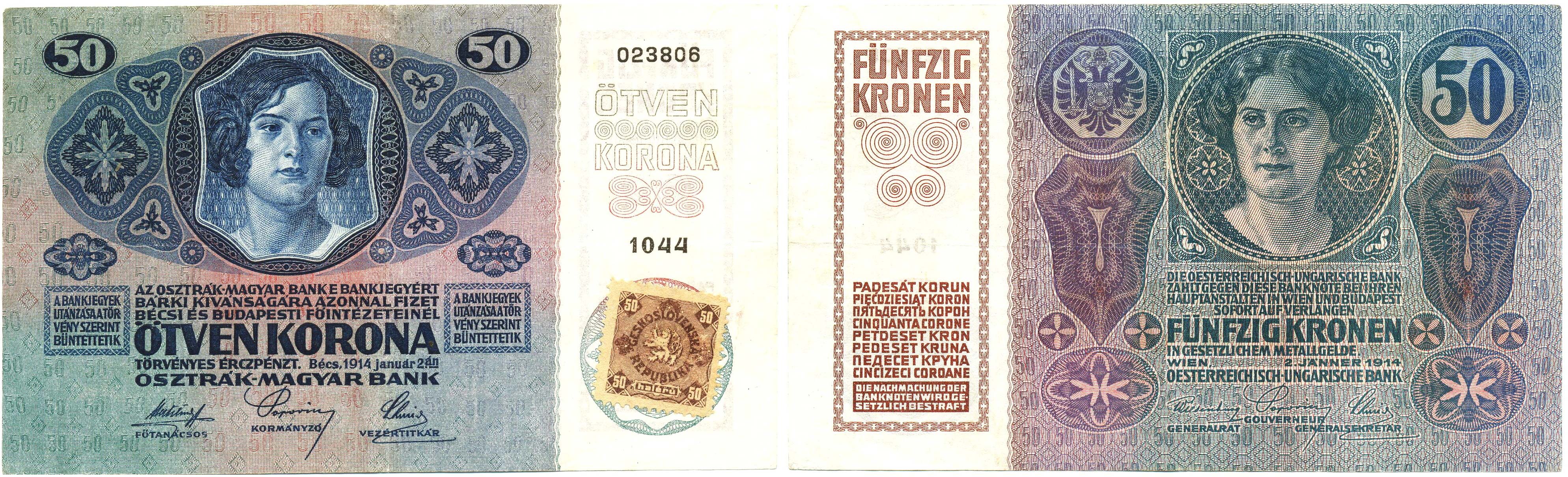 ČSR 50korun 1914, 727104 1017 hnědý kolek, 023806 1044 N.3