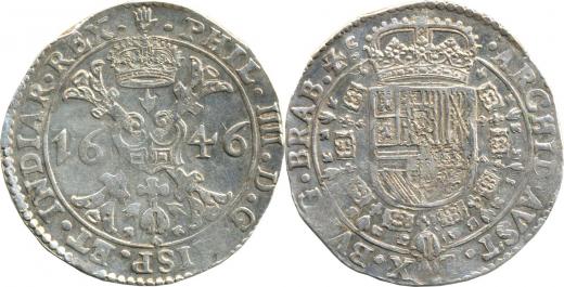Španělsko, Nizozemí, Brabant, Filip IV.1621-1665, patagon 1646, Antverpy n.ned.