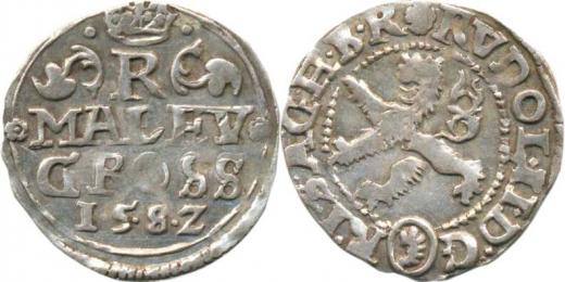Rudolf II. 1576-1611, malý groš 1582 Kutná Hora, Šatný, MKČ.380