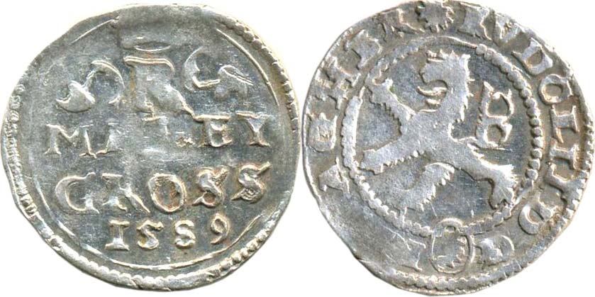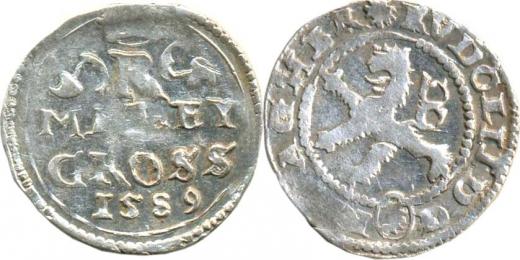 Rudolf II. 1576-1611, malý groš 1589 Kutná Hora, Šatný, MKČ.380