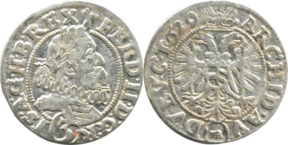 Ferdinand II. 1619-1637, 3krej.1629 Vratislav, Riedel+Ziesler, MKČ.1018