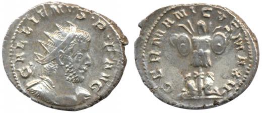 Gallienus 253 – 268, AR antoninian, R:zajatí Germáni u trofeje, RIC.18