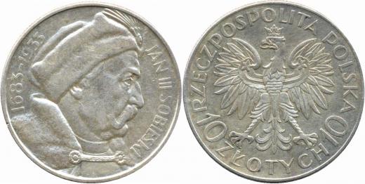 Polsko, 10zloty 1933, Jan III. Sobieski, KM.23 , n.škr.