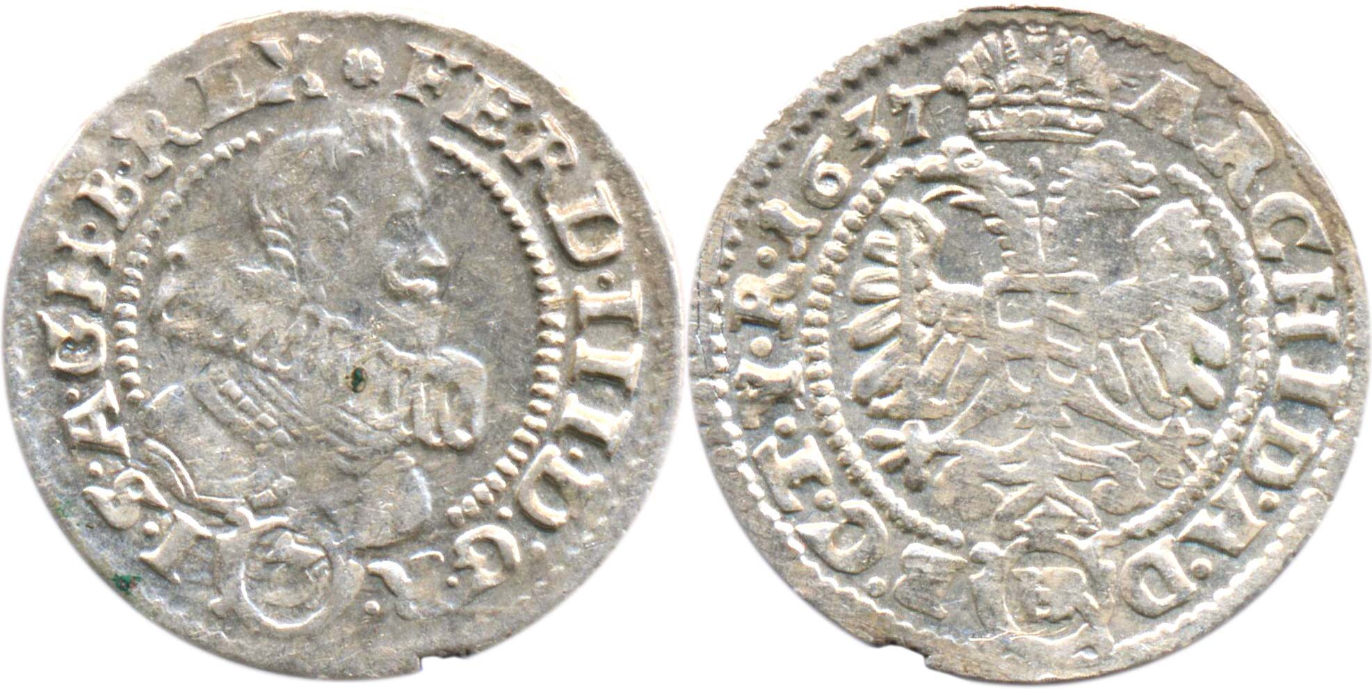 Ferdinand III.1637-1657, 3krej.1637, Kladsko, Rossner, MKČ.1336