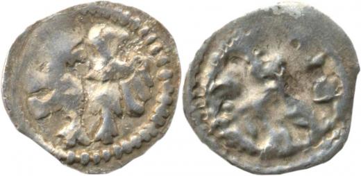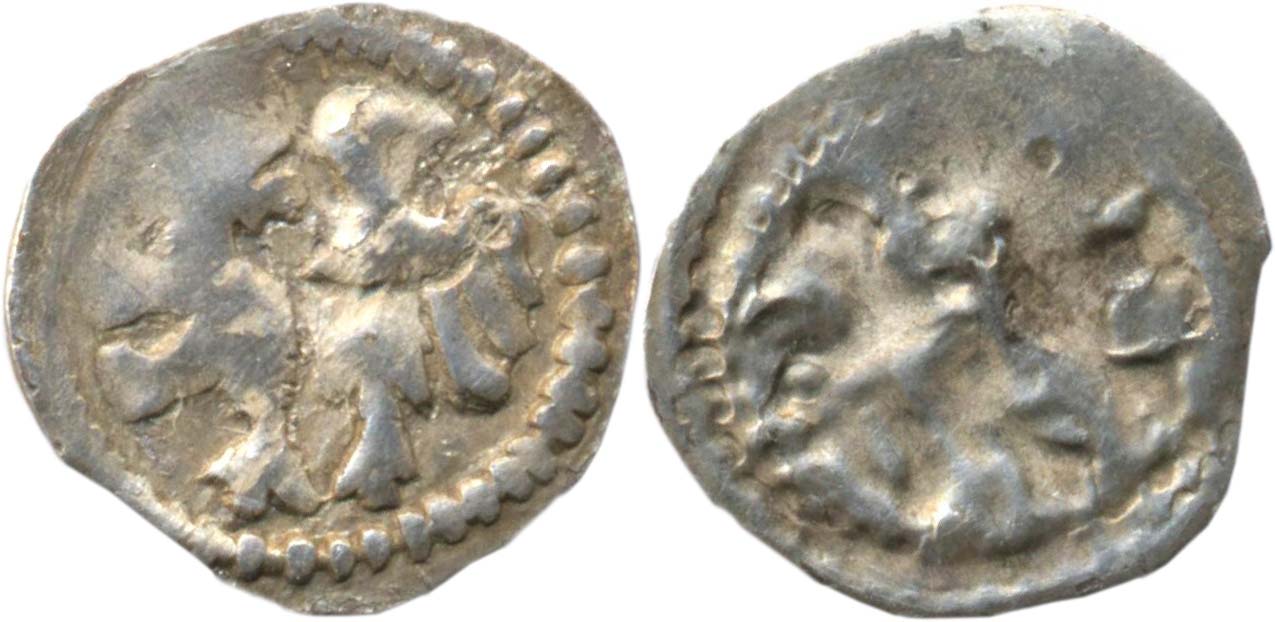 Slezsko?, denár s půlenou orlicí a lvem, počátek 14.stol., inklusní ražba , R n.ned.