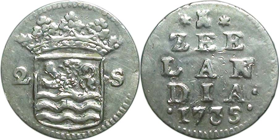 Nizozemí-Zeeland, 2stuiver 1735, KM 59