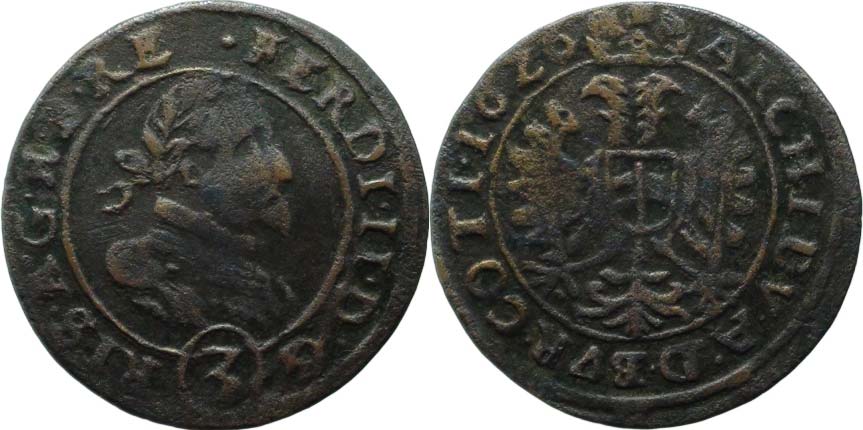 Ferdinand II. 1619-1637 3krej. 1626 Hradec u Opavy-Zwirner+Raschke, MKČ 1138, Cu sbírkový