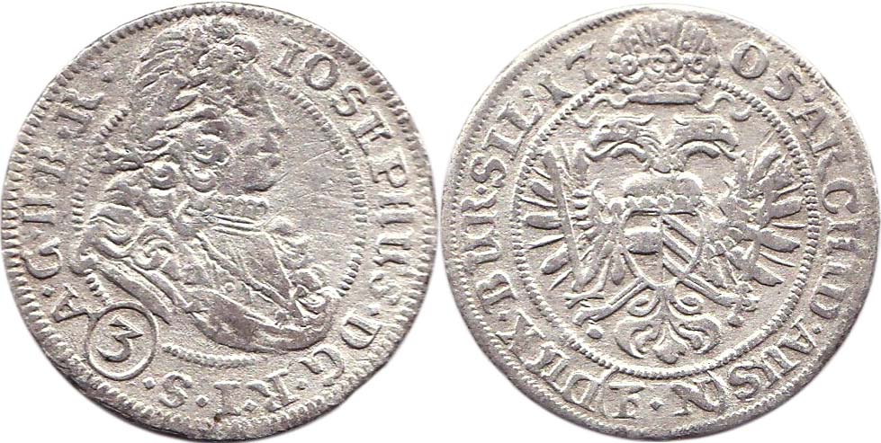 Josef I. 1705-1711, 3krej.1705 Vratislav-Nowak, MKČ 1758, vzácnější první ročník dr.škr.