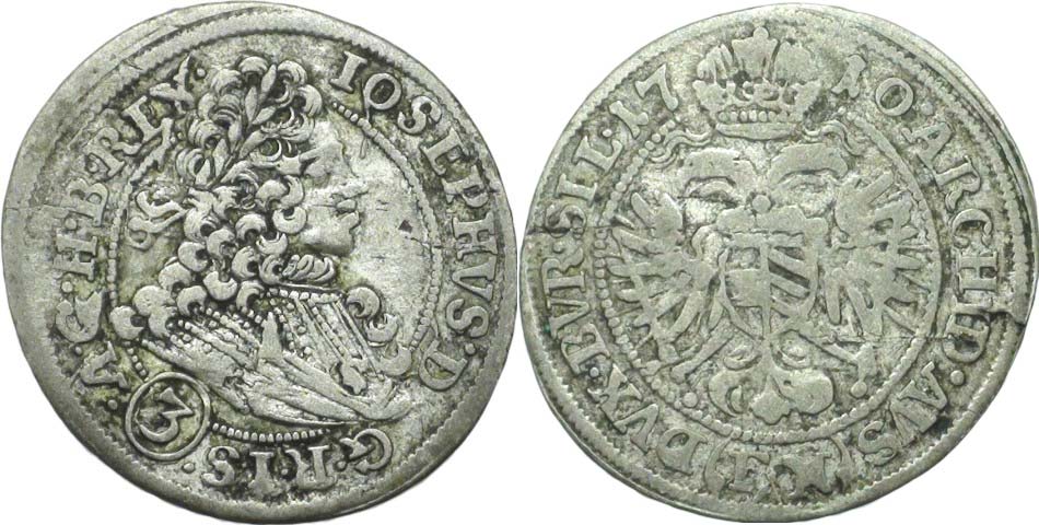 Josef I. 1705-1711, 3krej.1710 Vratislav-Nowak, MKČ 1761 var.opisů dr.vady kovu