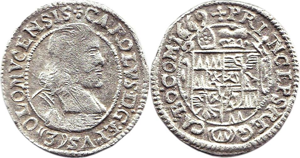 Olomouc bisk., Karel II. Lichtenstein 1664-1695 3krej.1669, SV 322 E3/B5