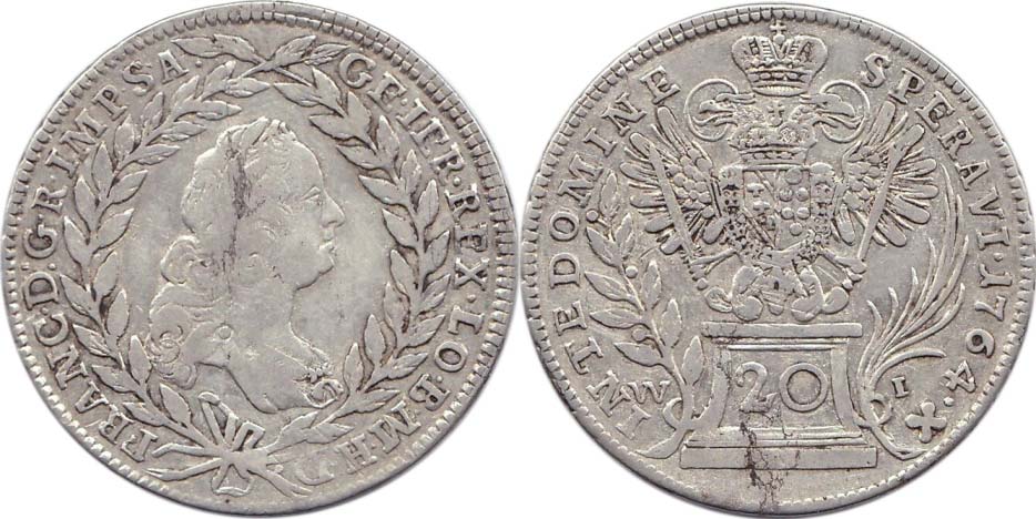 František I. 1745-1765, 20krej.1764 W-I Vídeň, Nov.18 nep.škr.,dr.vady