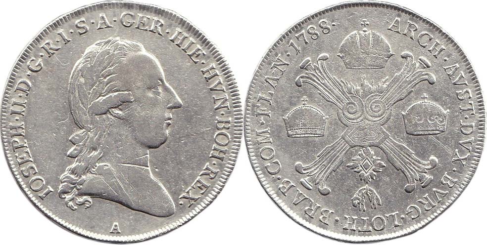 Josef II. 1780-1790, 1/2tolar 1788 A, křížový nep.škr.