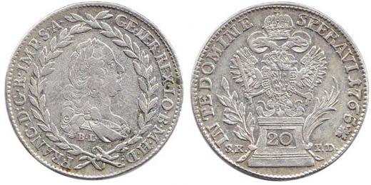 František I. Lotrinský 1745-1765, 20krej.1765 BL/SK-PD Kremnica, posmrtný, Novotný 34