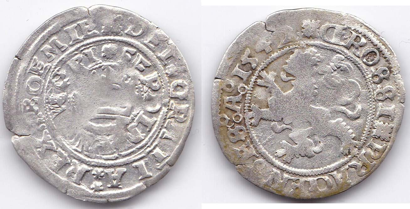 Ferdinand I. 1526-1564, pražský groš 1542 ned., mírně napr.