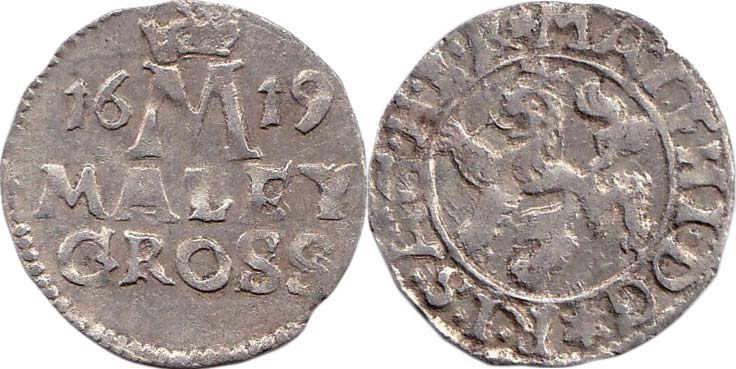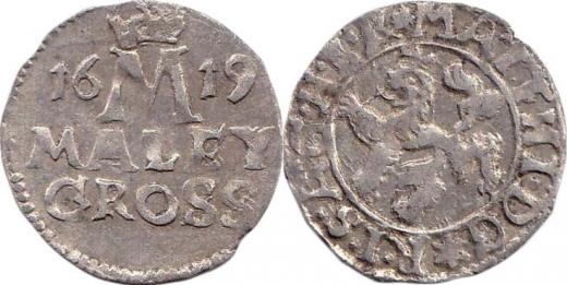 Matyáš II. 1611-1619, malý groš 1619 Kutná Hora-Hölzl, MKČ 542