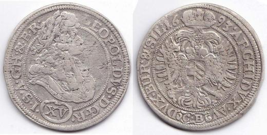 Leopold I. 1657-1705, XVkrej.1693 CB Břeh-Bretschneider, MKČ dr.vada kovu v aversu