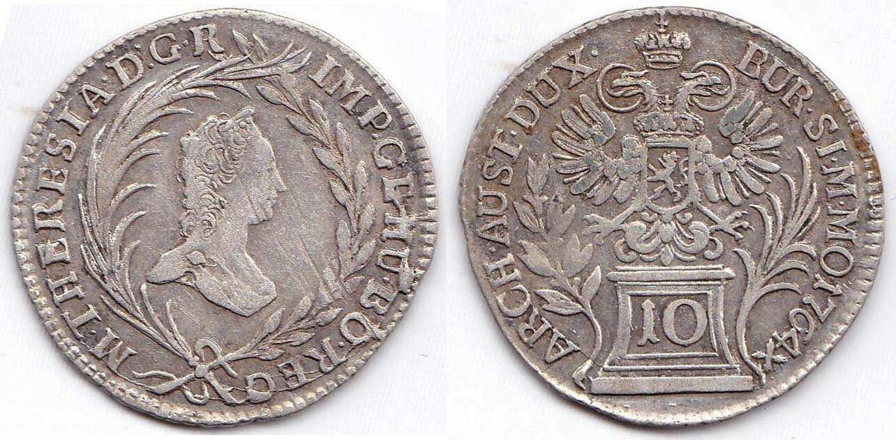 Marie Terezie 1740-1780, 10krej.1764 Praha-Erdmann, MKČ 1961 dr.just.