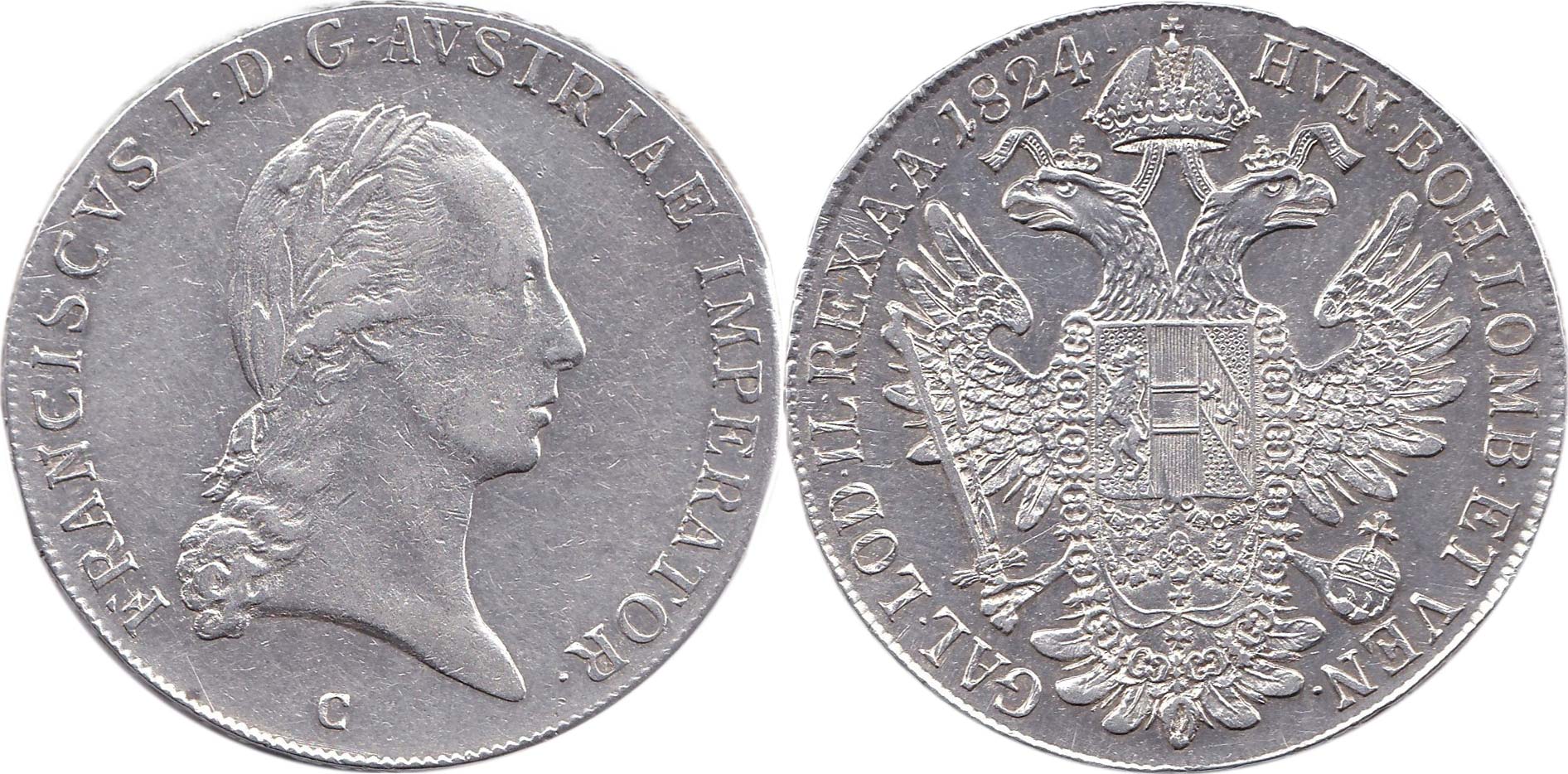 František II. 1792-1835, tolar 1824 C Praha, Hal.2025 vlas.škr.
