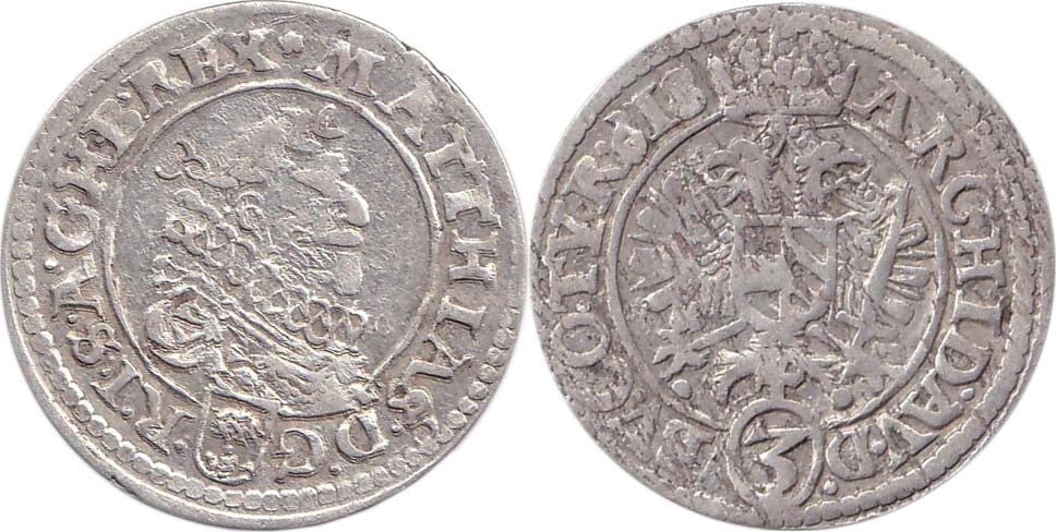 Matyáš II. 1611-1619, 3krej.1618 Vídeň-Jessensky, nep.vady kovu v rubu