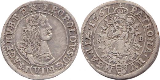 Leopold I. 1657-1705, VIkrej.1667 KB Kremnica, Nech.1188, Huszár 1450