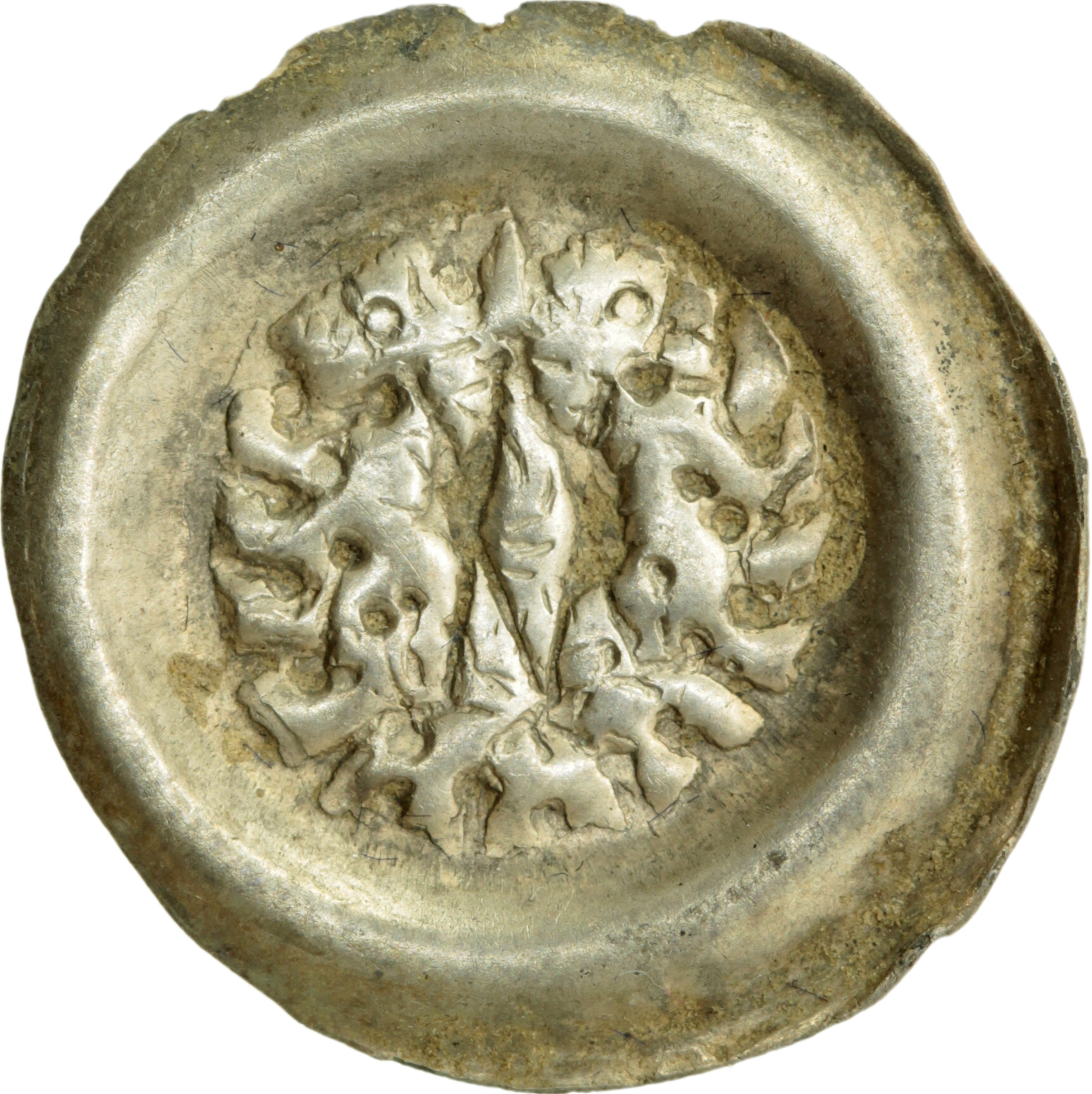 Přemysl Otakar II. 1253-1278, brakteát Cach -, jako 945, ale místo cimbuří věž zakončena hrotem R