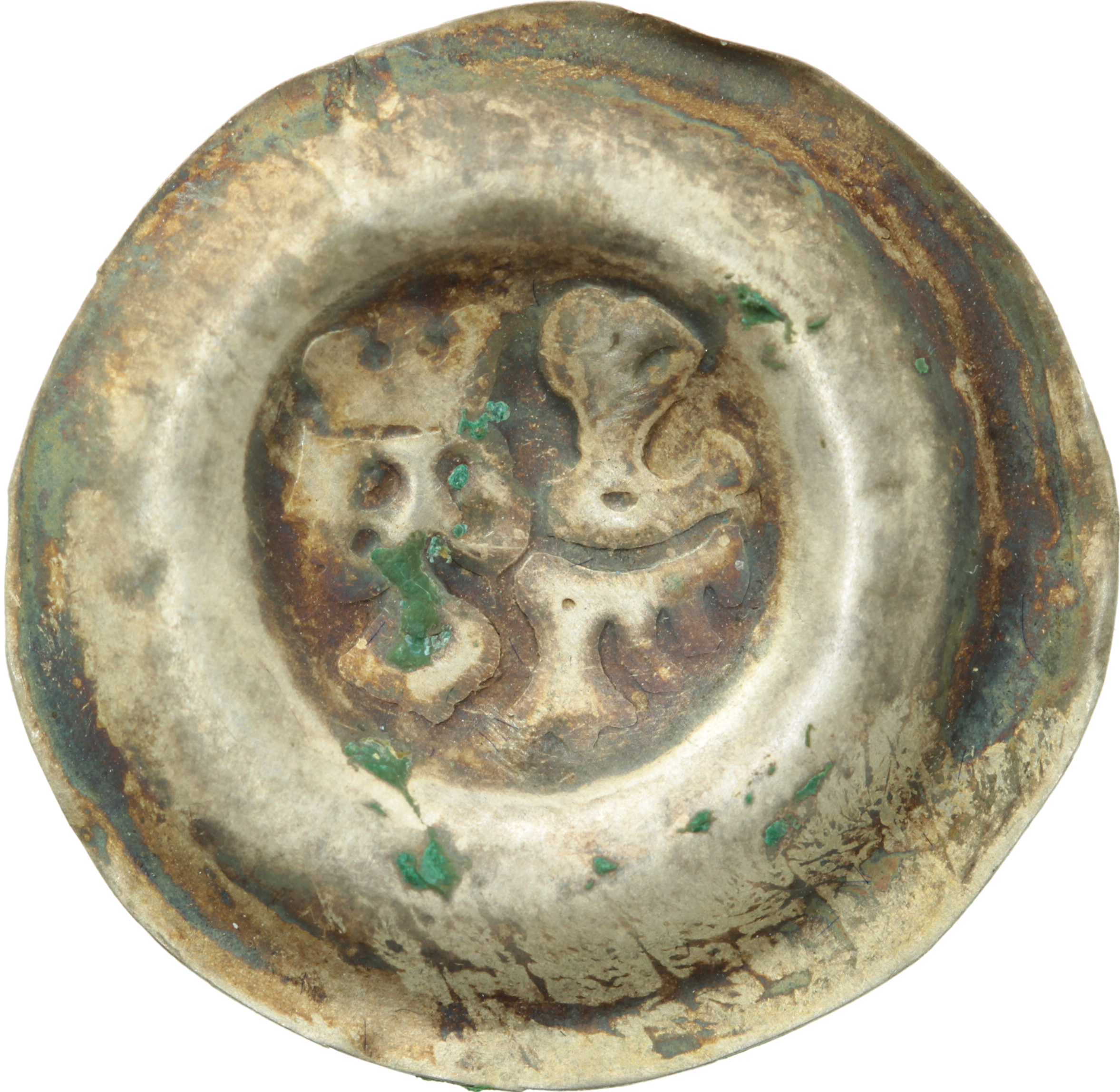Václav II. 1278-1305, brakteát Cach 1008 patina, st.měděnky