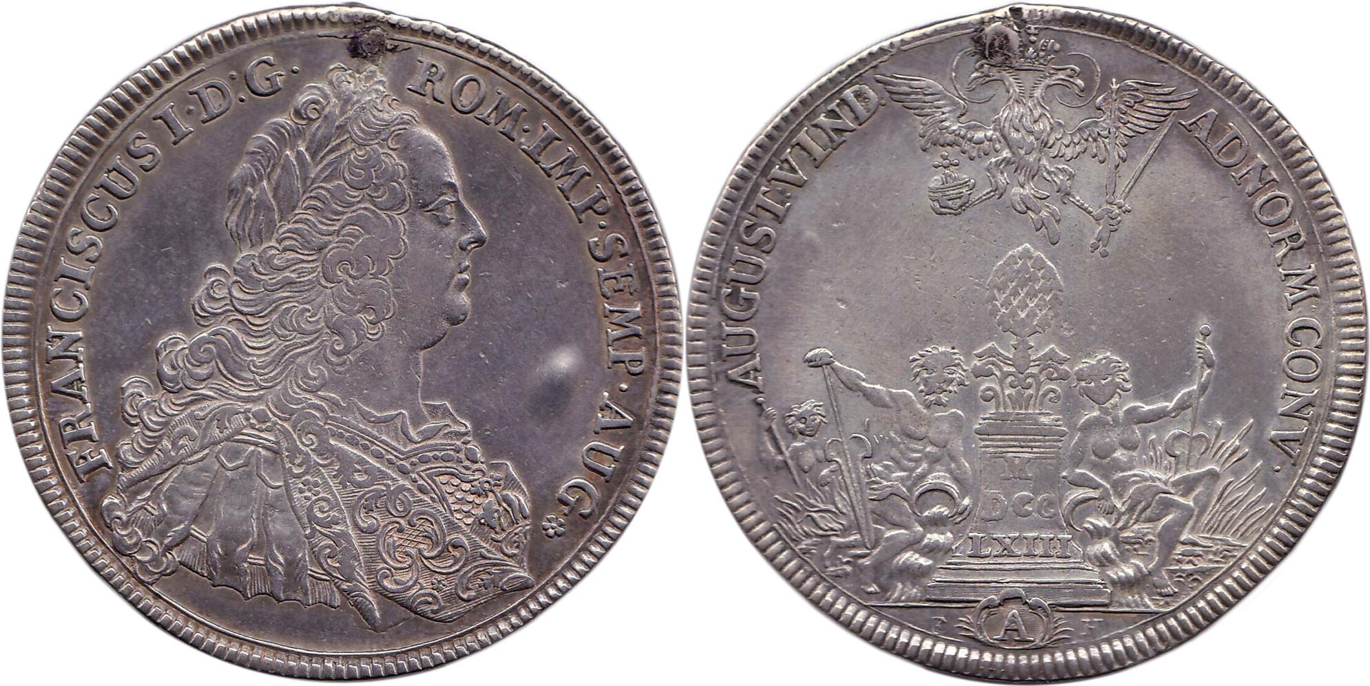 Augsburg, František Lotrinský 1745-1765, tolar 1763 A/FH, Dav.1928 st.po o.
