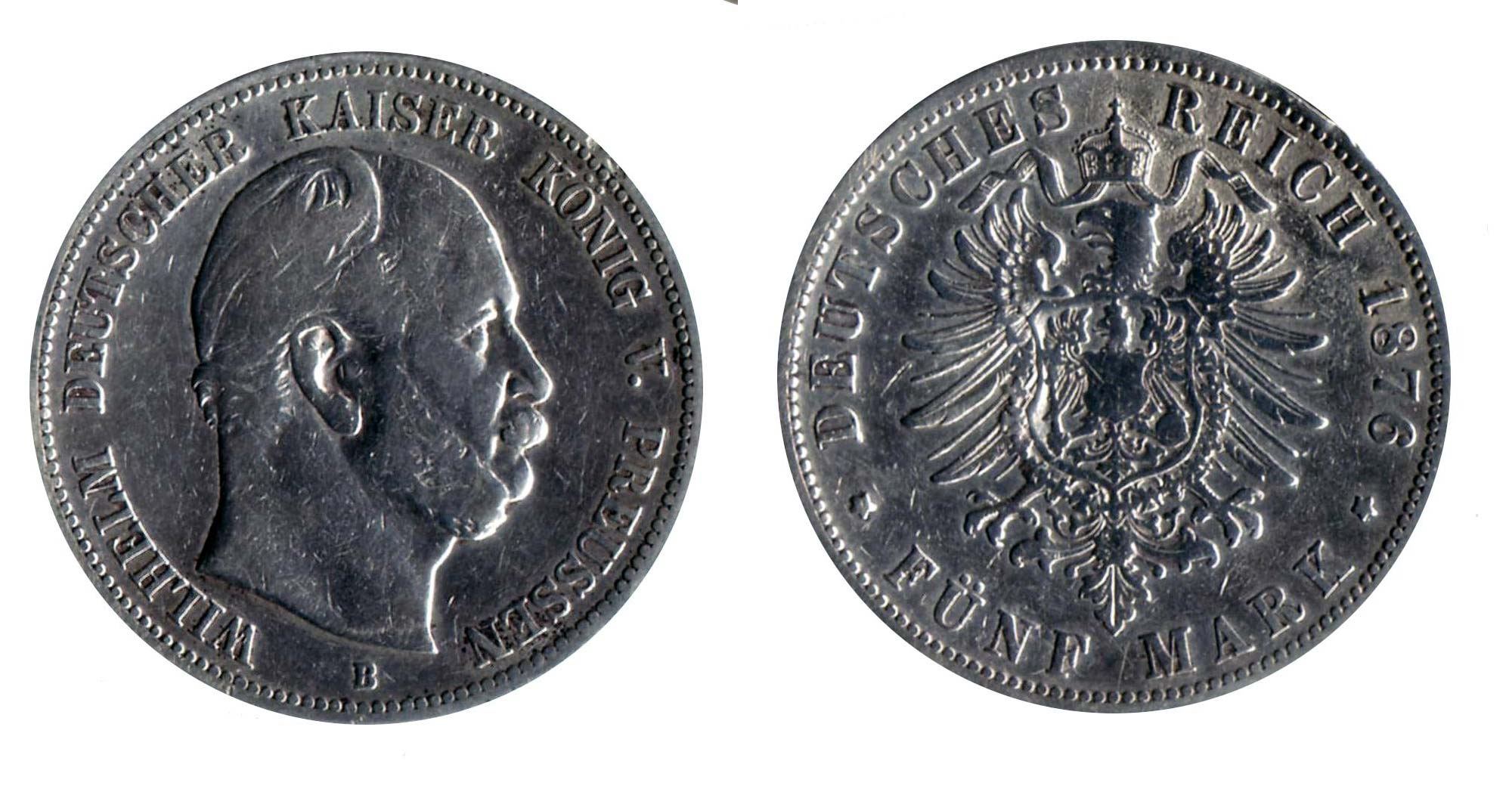 5 marek 1876 B, KM 503.2, nep.hr., rysky