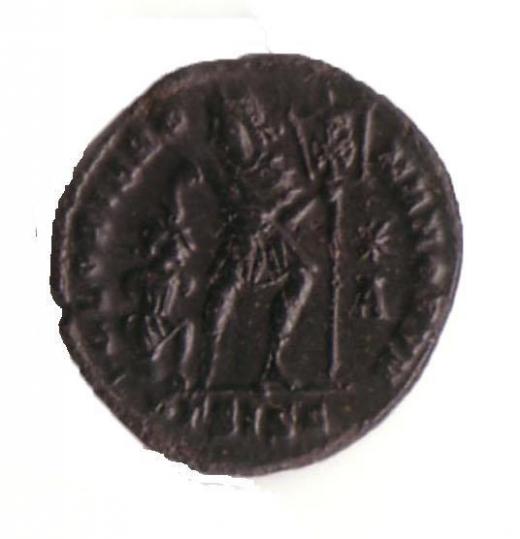 AE 3, L: ověnčená hlava zprava, DN VALENTINI - ANVS PF AVG, R: voják se standartou, drží za vlasy zajatce, GLORIA ROMANORVM, *A, Siscia, III. dílna, 2,22 g. S 4002, RIC 5a pěkná patina