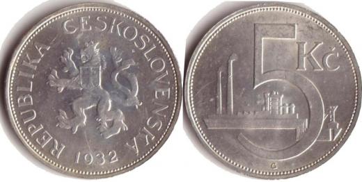 5 Kč 1932, dlouhé vlnovky na hraně, =R=