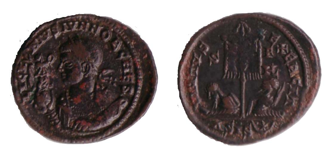 AE follis 20, L: poprsí císaře, drží Victorii na globu, LICI - NIVS IVNNO B CAES, R: 2 zajatci sedící pod trofejí, VIRTVS EXERCIT, v poli S - PHL, Siscia, 3,06 g. S 3722 nep. nedor., jinak velmi pěkný