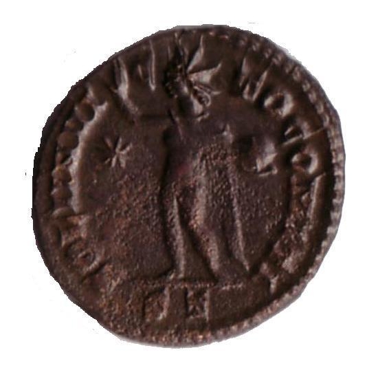 AE follis malý, L: ověnčená hlava zprava, IMP CONSTANTINVS PF AVG, R: stojící Sol, drží globus, hvězda, SOLI INVI - CT - O COMITI, Trevor, 2,86 g. K 34 na R kor.