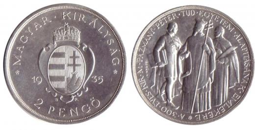 2 pengö 1935 Universita, Ag .640, 10 g. KM 513