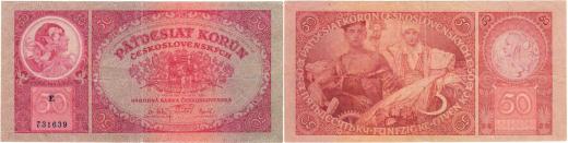 50 Koruna 1929, série E, BHK.24a1, He.24a1 "neperf."
