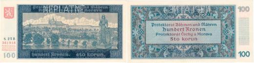 100 Koruna 1940 - 1.vyd., sér.25B, BHK.32, He.34a.s2 "NEPLATNÉ"
