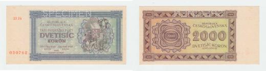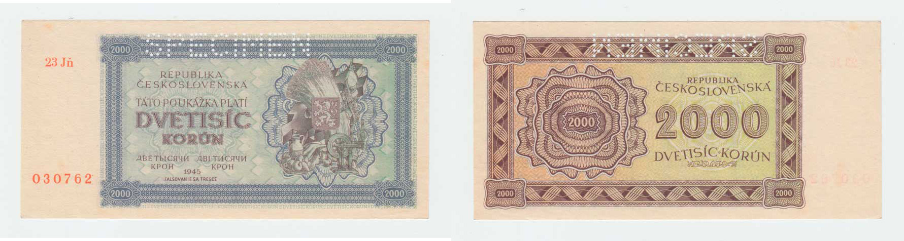 2000 Koruna 1945, série 23Jň, BHK.69bB, He.74a2.s1, nahoře "SPECIMEN"