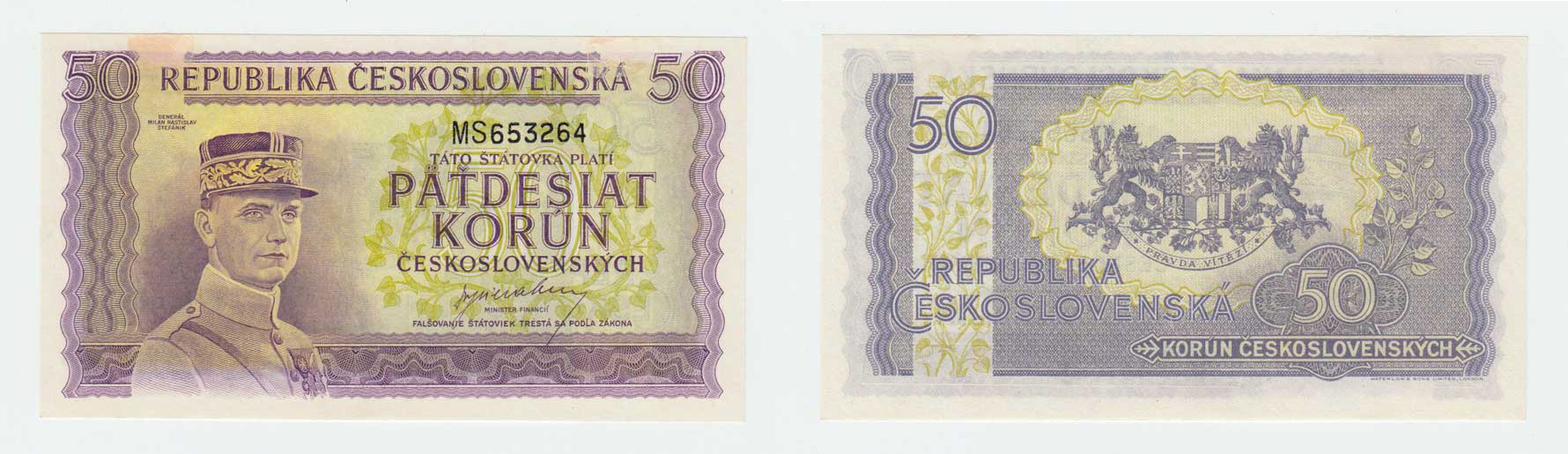 50 Koruna b.l.(1945), série MS, BHK.73, He.78a, stopy lepu "neperf."