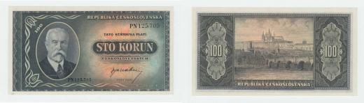 100 Koruna b.l.(1945), série PN, BHK.74, He.79a "neperf."