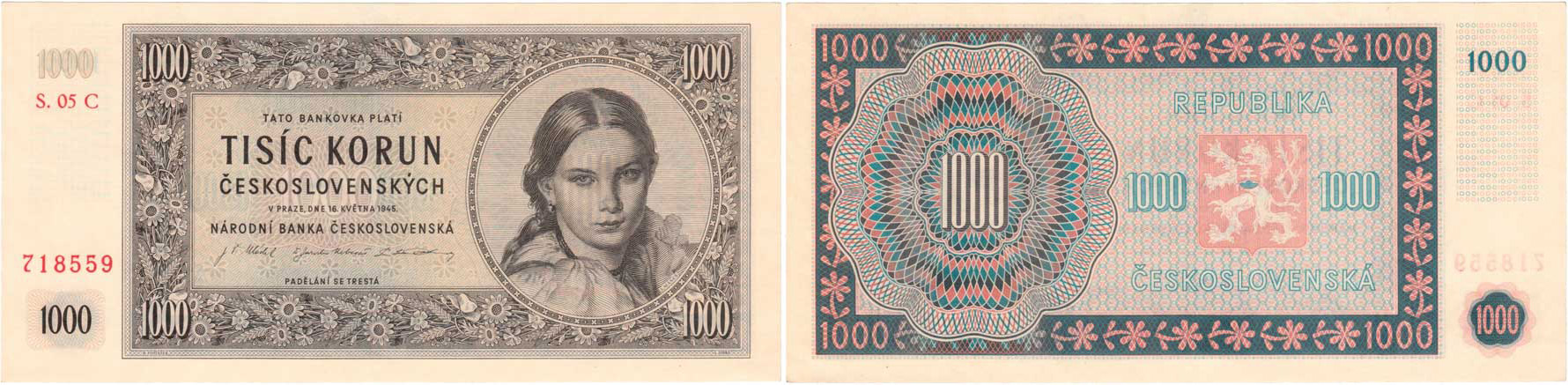1000 Koruna 1945, série 05C, BHK.78c1, He.84a "neperf."