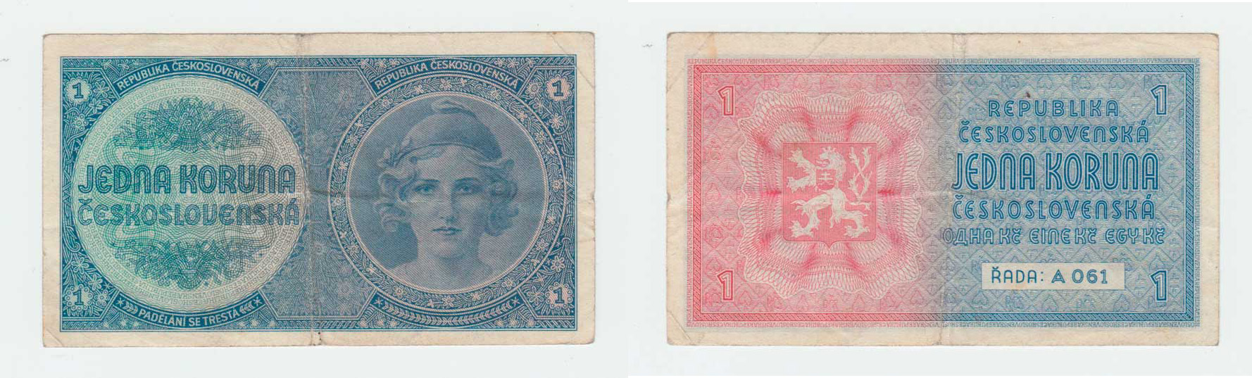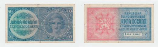 1 Koruna (1938), série A061, BHK.N1, He.28a "neperf."
