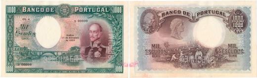 1000 Escudos 17.9.1929, Pick.145 - anulát B 00000 - 3x perforováno "SPECIMEN", skvrnky RRR!