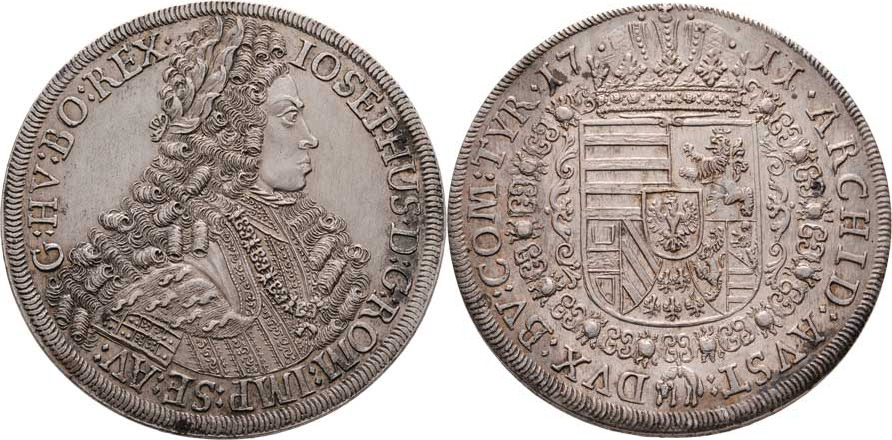 Tolar 1711, Hall, M-A.210, 28.735g, skvrnky, patina, téměř
