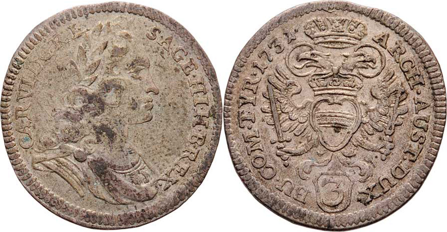 3 Krejcar 1731, Vídeň, M-A.231, 1.602g, krajový střížek, patina