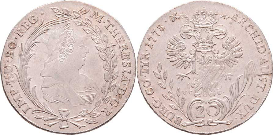 20 Krejcar 1778 VC-S, Hall, N.55, M-A.280, menší ratolesti v reversu, 6.618g, dr.vada razidla, mírně just., nep.rysky