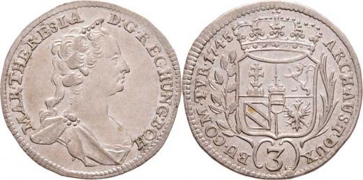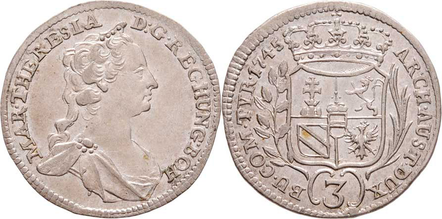 3 Krejcar 1745, Vídeň, N.14, M-A.246, 1.661g, nep.hr., nep.rysky, nep.vady razidla, pěkná patina, téměř R!