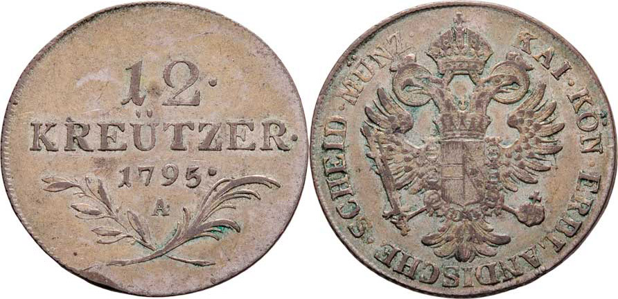 12 Krejcar 1795 A, Vídeň, 4.831g, nep.nedor., nep.hr., nep.rysky, pěkná patina, téměř
