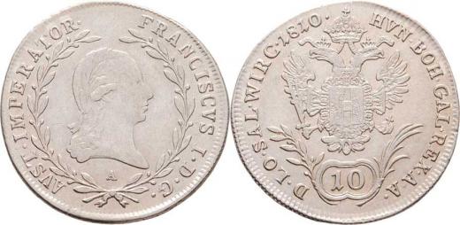 10 Krejcar 1810 A, Vídeň, 3.826g, nep.hr., nep.rysky, pěkná patina R!