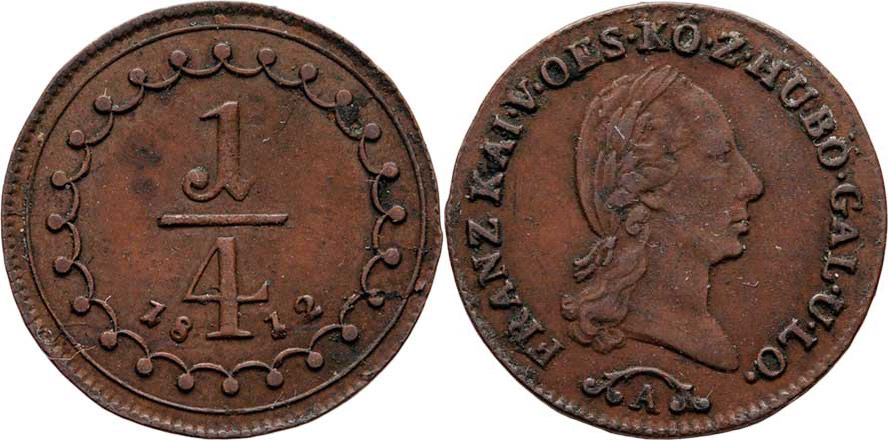 Cu 1/4 Krejcar 1812 A, Vídeň, 1.118g, pěkná patina