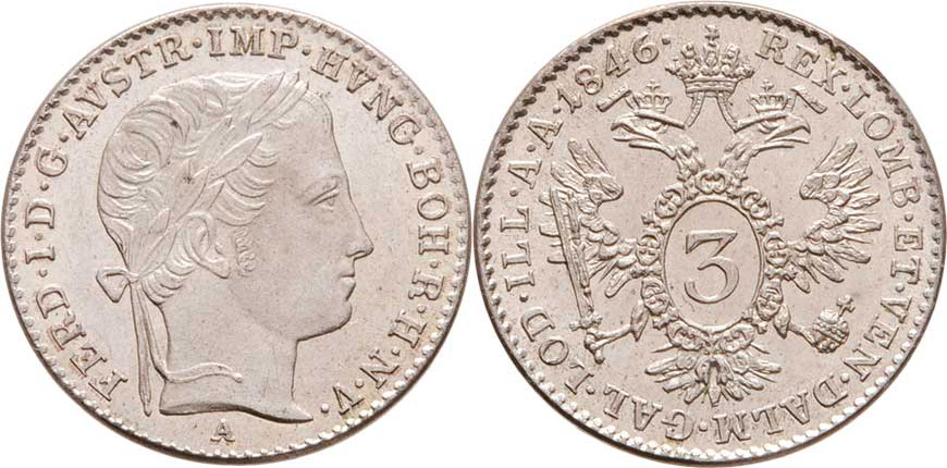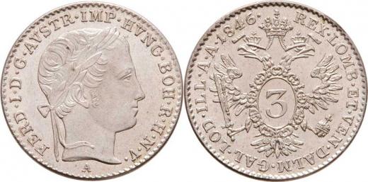 3 Krejcar 1846 A, Vídeň, 1.696g, krásná patina