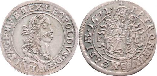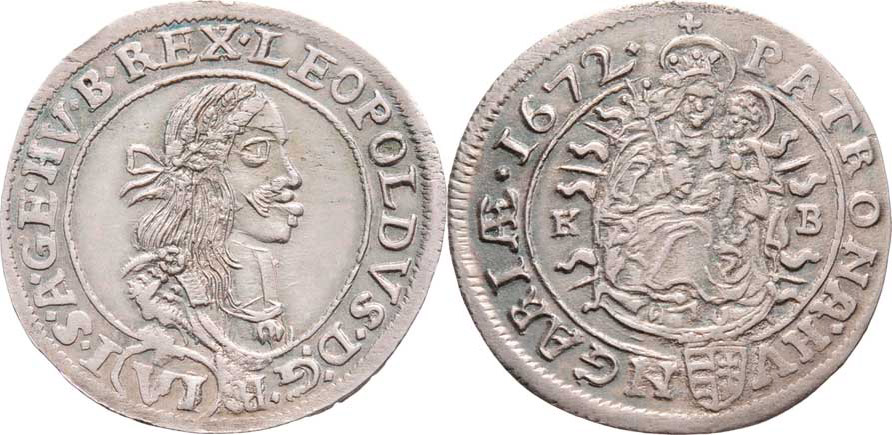 VI Krejcar 1672 KB, Nech.1193, Husz.1450, 3.353g, pěkná patina